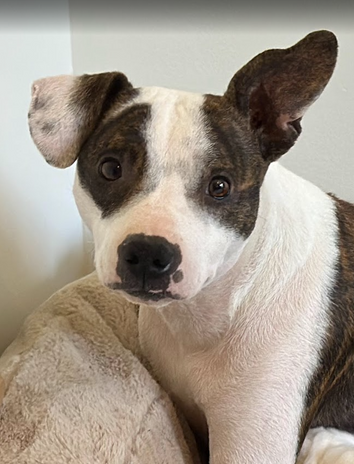 Gentle, sweet, and eager to please. She started out shy and submissive, but her confidence grows daily. She’s blossoming into a playful, loving companion.